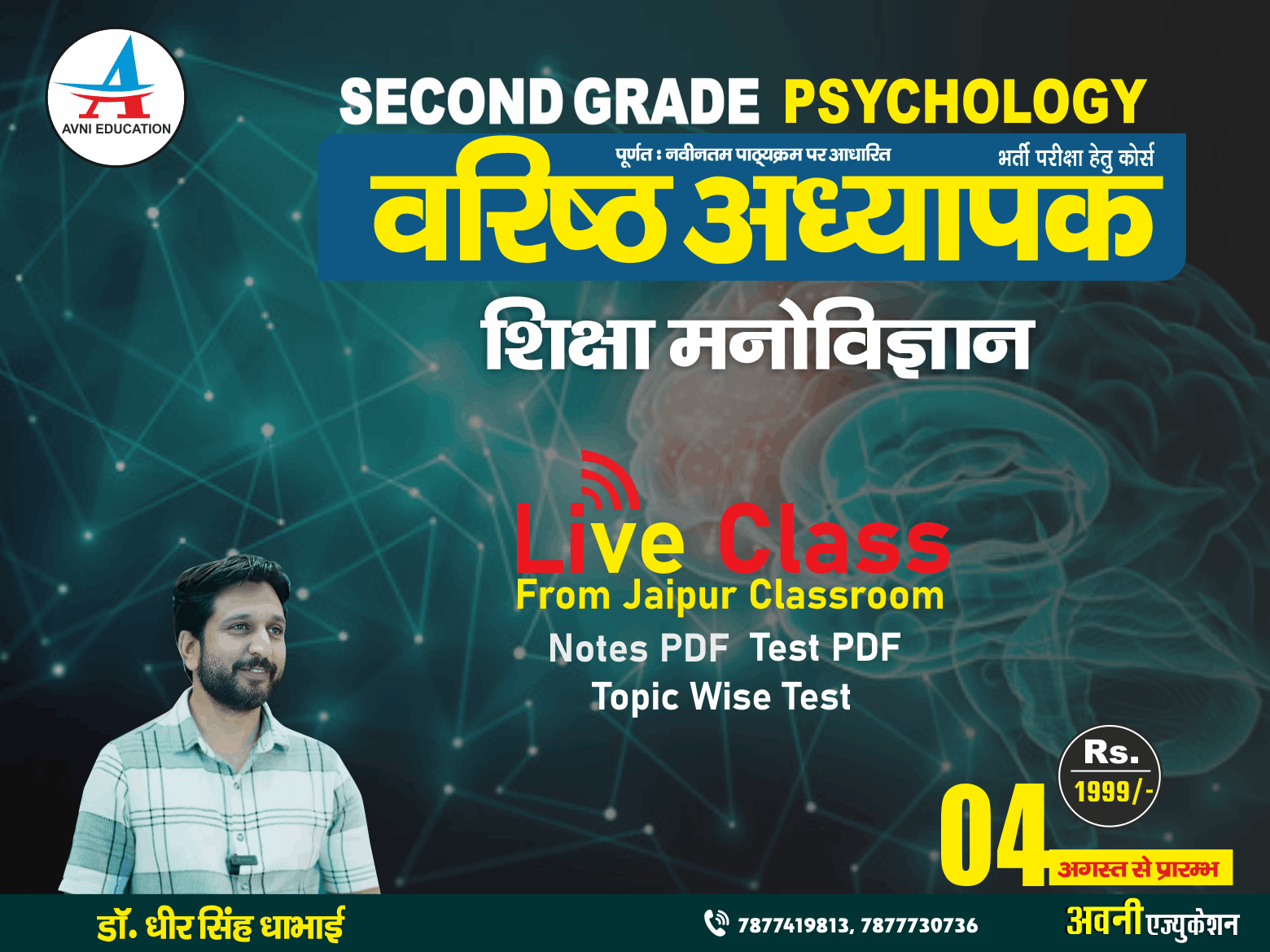 ЁЯТкрдкрд╛рдиреЗ рдХреА рдЬрдмрд░рджрд╕реНрдд рдЗрдЪреНрдЫрд╛ЁЯТк 2nd Grade Psychology || (Live From Jaipur Classroom) -2025 ЁЯСЙ рдХреЛрд░реНрд╕ рдкреНрд░рд╛рд░рдВрдн рд╣реЛрдиреЗ рдХреА рддрд┐рдерд┐ - 4 рдЕрдЧрд╕реНрдд, 2025 ЁЯСЙ рдЖрддреНрдорд╡рд┐рд╢реНрд╡рд╛рд╕ + рд╕рд╛рдзрдирд╛ + рдЗрдЪреНрдЫрд╛ рд╢рдХреНрддрд┐ = рд╕рдлрд▓рддрд╛ ЁЯСЙ рдпрд╣ рдСрдирд▓рд╛рдЗрди рдХреЛрд░реНрд╕ рджреНрд╡рд┐рддреАрдп рд╢реНрд░реЗрдгреА рд╢рд┐рдХреНрд╖рдХ рднрд░реНрддреА рдкрд░реАрдХреНрд╖рд╛ рдХреЗ рд▓рд┐рдП рдЙрдкрдпреЛрдЧреА рд╣реИ рддрдерд╛ RPSC рджреНрд╡рд╛рд░рд╛ рдЖрдпреЛрдЬрд┐рдд рдкрд░реАрдХреНрд╖рд╛ рдХреЗ рдкрд╛рдареНрдпрдХреНрд░рдо рдкрд░ рдЖрдзрд╛рд░рд┐рдд рд╣реИ ЁЯСЙЁЯП╗ рд╡рд┐рджреНрдпрд╛рд░реНрдерд┐рдпреЛрдВ рдХреА рд╕реБрд╡рд┐рдзрд╛ рдХреЛ рдзреНрдпрд╛рди рдореЗрдВ рд░рдЦрдХрд░ рддреИрдпрд╛рд░ рдЗрд╕ рд╡рд┐рд╢реЗрд╖ рдСрдирд▓рд╛рдЗрди рдХреЛрд░реНрд╕ рдХреЗ рдорд╛рдзреНрдпрдо рд╕реЗ рдШрд░ рдмреИрдареЗ рдирд╡реАрдирддрдо рдкрд╛рдареНрдпрдХреНрд░рдо рдкрд░ рдЖрдзрд╛рд░рд┐рдд рдЧреБрдгрд╡рддреНрддрд╛рдкреВрд░реНрдг рдкрд╛рдареНрдпрдХреНрд░рдо рд╕рд╛рдордЧреНрд░реА рд╕реЗ рдЕрдкрдиреА рддреИрдпрд╛рд░реА рдХрд░ рд╕рдХрддреЗ рд╣реИрдВ ЁЯСЙ рдпрд╣ рдХреЛрд░реНрд╕ рд╡рд┐рдЦреНрдпрд╛рдд рдПрд╡рдВ рдЕрдиреБрднрд╡реА рд╡рд┐рд╖рдп рд╡рд┐рд╢реЗрд╖рдЬреНрдЮреЛрдВ рдХреЗ рдорд╛рд░реНрдЧрджрд░реНрд╢рди рдореЗрдВ рд╡рд┐рд╢реЗрд╖ рд░рдгрдиреАрддрд┐ рдХреЗ рд╕рд╛рде рдирд┐рд░реНрдгрд╛рдпрдХ рддреИрдпрд╛рд░реА ЁЯСЙ рдХреЛрд░реНрд╕ рдЖрдкрдХреЛ рд╕рднреА рд╡реАрдбрд┐рдпреЛ рдЬрдпрдкреБрд░ рдХреНрд▓рд╛рд╕рд░реВрдо рд╕реЗ рд▓рд╛рдЗрд╡ рдХреНрд▓рд╛рд╕реЗрд╕ рдХреЗ рд░реВрдк рдореЗрдВ рдЙрдкрд▓рдмреНрдз рд╣реЛрдЧреА рдЕрддрдГ рдЖрдк рдзреИрд░реНрдп рдкреВрд░реНрд╡рдХ рдЬреИрд╕реЗ-рдЬреИрд╕реЗ рдЖрдк рдХрд╛ рдХреЛрд░реНрд╕ рд╣реЛрддрд╛ рд░рд╣реЗ рдЕрдзреНрдпрдпрди рдирд┐рдпрдорд┐рдд рд░реВрдк рд╕реЗ рдЬрд╛рд░реА рд░рдЦреЗрдВ ЁЯСЙ рдкреНрд░рд┐рдп рд╡рд┐рджреНрдпрд╛рд░реНрдерд┐рдпреЛрдВ рдХреА рд╡реНрдпрд╛рдкрдХ рддреИрдпрд╛рд░реА рдХреЗ рд▓рд┐рдП рдмрдирд╛рдП рдЧрдП рдЗрд╕ рдХреЛрд░реНрд╕ рдХреА рдореБрдЦреНрдп рд╡рд┐рд╢реЗрд╖рддрд╛ рдпрд╣ рд╣реИ рдХреА рдордиреЛрд╡рд┐рдЬреНрдЮрд╛рди рдХреЗ рд╡рд┐рд╢реЗрд╖рдЬреНрдЮ, рдореЛрдЯрд┐рд╡реЗрд╢рди рд╕реНрдкреАрдХрд░ рдбреЙ. рдзреАрд░ рд╕рд┐рдВрд╣ рдзрд╛рднрд╛рдИ рдХреЗ рджреНрд╡рд╛рд░рд╛ рд╕рднреА рд╡реАрдбрд┐рдпреЛ рдЬрдпрдкреБрд░ рдХреНрд▓рд╛рд╕рд░реВрдо рд╕реЗ рд▓рд╛рдЗрд╡ рдХреНрд▓рд╛рд╕реЗрд╕ рд╕реЗ рдЙрдкрд▓рдмреНрдз рдХрд░рд╛рдИ рдЬрд╛рдПрдЧреА ЁЯСЙЁЯП╗ рдЗрд╕рдореЗрдВ рдЯреЙрдкрд┐рдХ рд╡рд╛рдЗрдЬ рдЯреЗрд╕реНрдЯ рд╣реЛрдВрдЧреЗред ЁЯСЙЁЯП╗ TEST PDF ЁЯСЙЁЯП╗ PDF рдбрд╛рдЙрдирд▓реЛрдб рд╡ рдкреНрд░рд┐рдВрдЯрдЖрдЙрдЯ рдХреА рд╕реБрд╡рд┐рдзрд╛рдПрдВ рд╣реИред ЁЯСЙЁЯП╗ PDF Notes ЁЯСЙЁЯП╗ Live From Jaipur Classroom