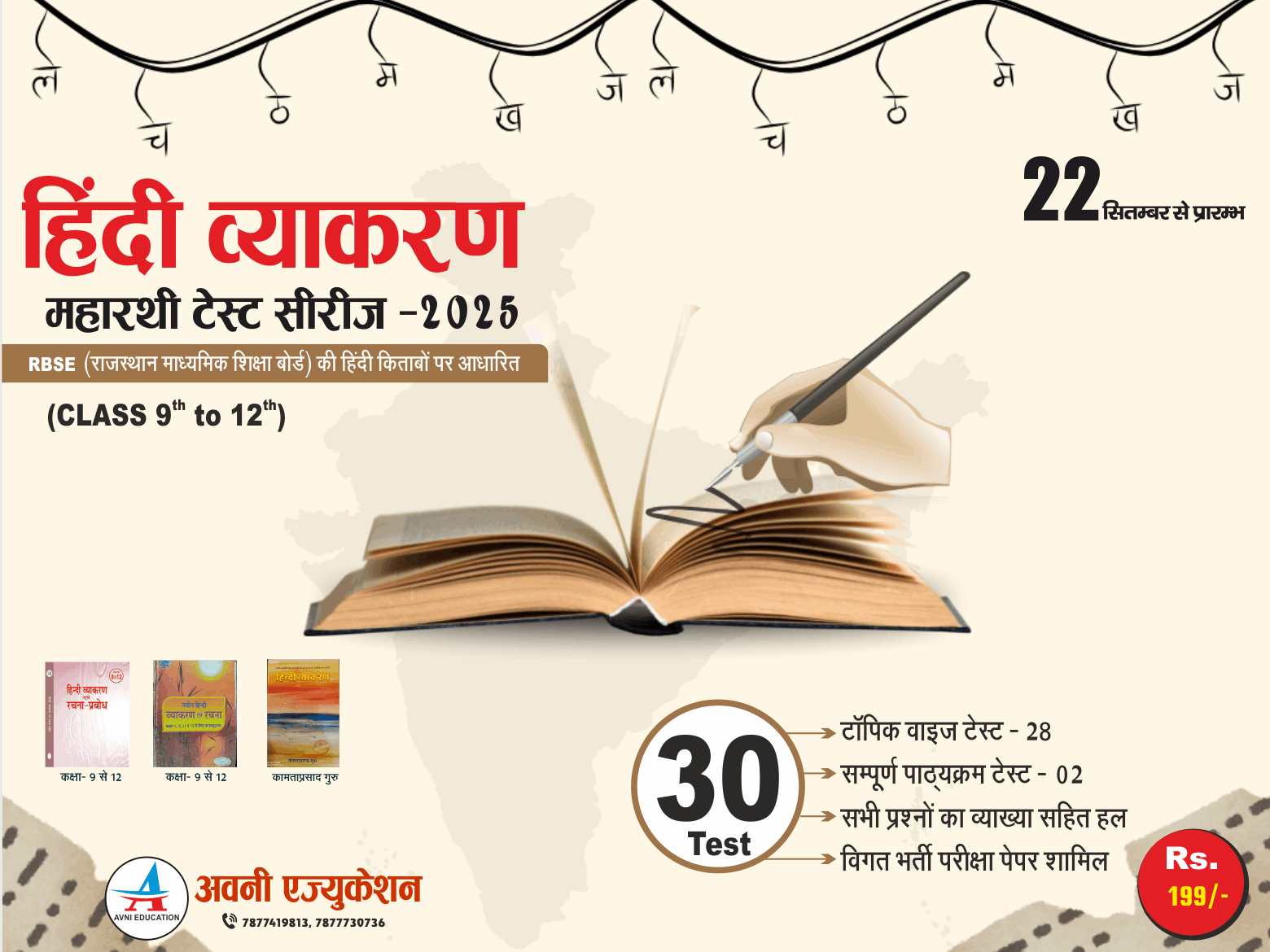 हिंदी व्याकरण महारथी टेस्ट सीरीज -2025 राजस्थान लोक सेवा आयोग (RPSC) एवं राजस्थान कर्मचारी चयन बोर्ड (RSMSSB) द्वारा आयोजित सभी भर्तियों के लिए उपयोगी है- स्कूल लेक्चरर प्रथम पेपर , 1st व 2nd ग्रेड (2nd paper) , अध्यापक (L-1 & L-2 ) , CET, JLO, महिला एवं कृषि पर्यवेक्षक, स्टेनोग्राफर , LDC, RAS , RJS , कॉलेज असिस्टेंट प्रोफेसर, REET, CTET, पटवारी, ग्रामसेवक, हाईकोर्ट फोर्थ ग्रेड कर्मचारी, पुस्तकालयाध्यक्ष , रोडवेज कंडक्टर आदि । सभी भर्ती परीक्षा पेपर में जहां हिन्दी व्याकरण पाठ्यक्रम में शामिल हैं उसके लिए उपयोगी सम्पूर्ण हिंदी व्याकरण पाठ्यक्रम शामिल। 1. टॉपिक वाइज टेस्ट - 28 2. सम्पूर्ण पाठ्यक्रम टेस्ट - 02 3. कुल टेस्ट - 30 4. सभी प्रश्नों का व्याख्या सहित हल 5. विगत भर्ती परीक्षा पेपर शामिल RBSE (राजस्थान माध्यमिक शिक्षा बोर्ड) की हिंदी व्याकरण (कक्षा 9th to 12th) + हिंदी व्याकरण की प्रामाणिक पुस्तकों पर आधारित।
